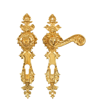Gründerzeit Türdrücker für historische Tür Haustür Messing (K-60G)