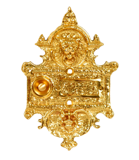 Sehr repräsentative Klingel / Klingelplatte im floralen Jugendstil mit Platz für Ihr Namensschild. Im sehr aufwändigen Sandgußverfahren in traditioneller Handarbeit aus massivem Messing hergestellt. Sehr detailliert gearbeitet. Besonders schön ist das florale Jugendstil – Muster.