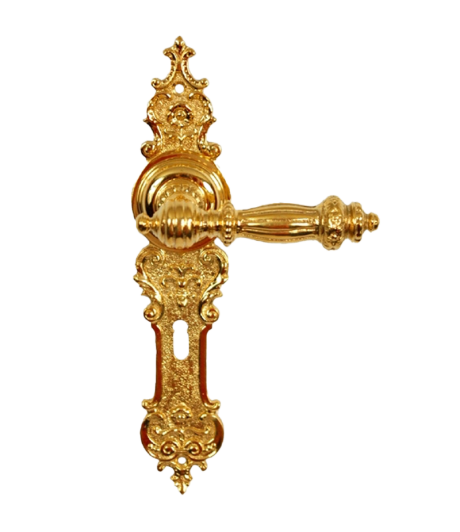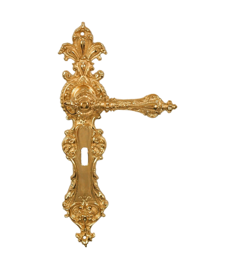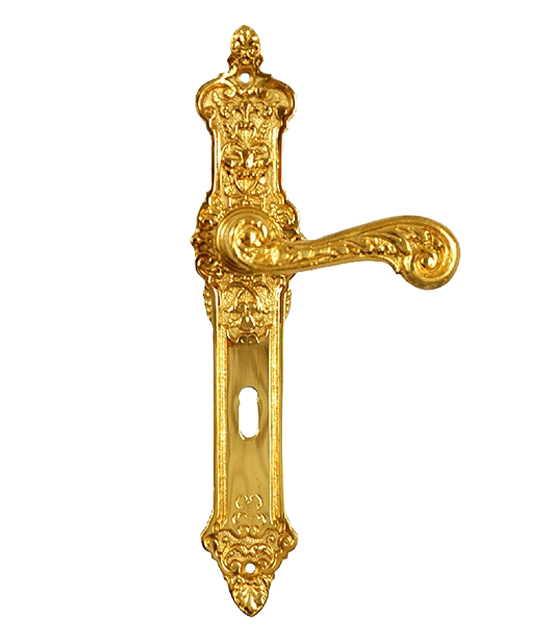 Traumhaft schöne Türdrückergarnitur für Zimmertüren im Gründerzeit-Stil aus massivem Messing. Die absoluten Highlights sind die herrlich verzierten Langschilder mit Ihrem seltenen Gründerzeit-Motiv, sowie die stilvoll verzierten Griffe. Der Zimmertürbeschlag zeichnet sich insgesamt durch die Liebe zum Detail aus, mit welcher Sie gefertigt wurde. Meisterhafte Qualität in traditionelller Handarbeit hergestellt. Ein absoluter Blickfang an jeder Tür. – einfach edel!